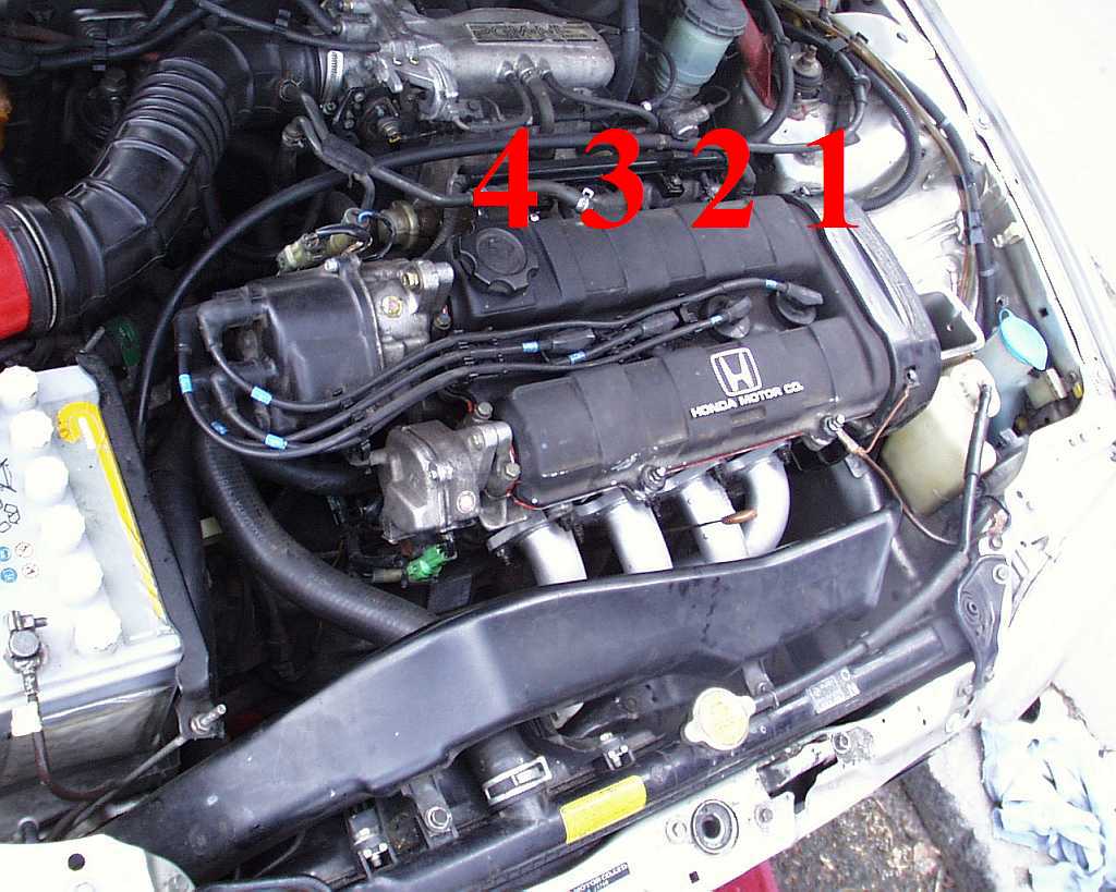 U motorů B16A1, čili DOHC vtec, je první válec na pozici vlevo dole!! Pozor na to! Jinak je to stejné, zapojení opět 1-3-4-2. Platí ovšem i to, že vlevo dole je vývod s označením C v kroužku.
