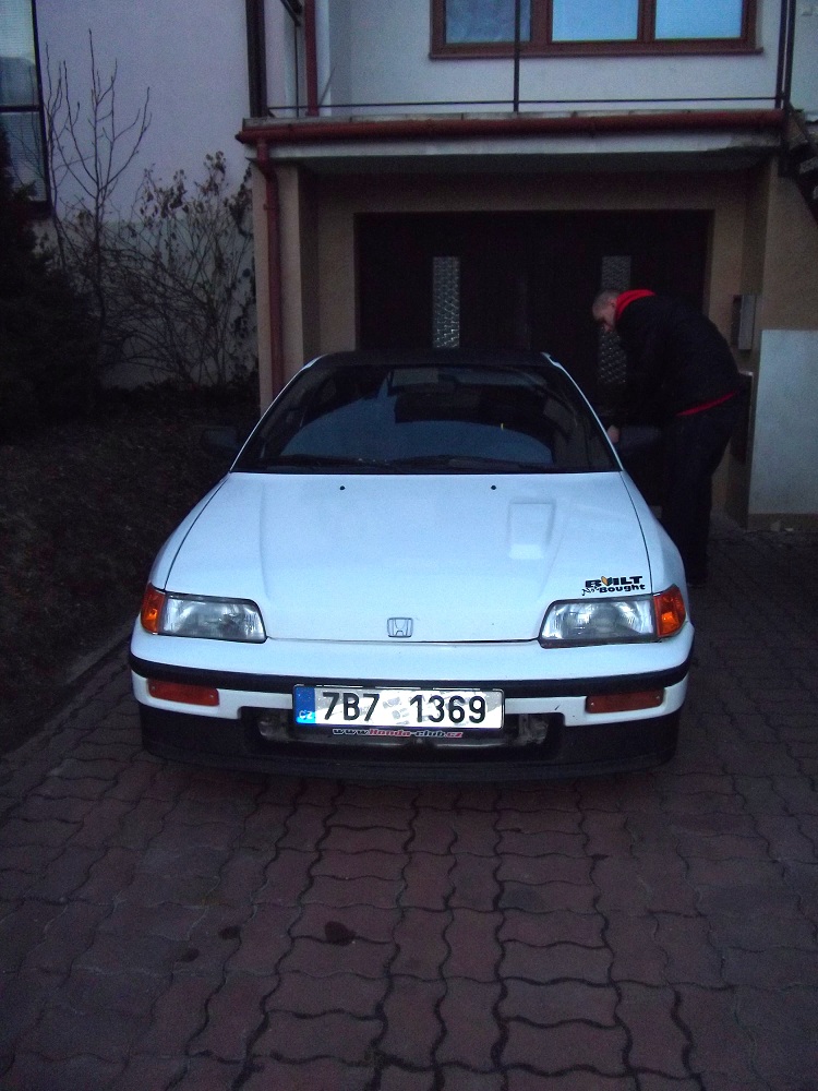 Zhruba před 11 hodinama jsem se stal majitelem krásné bílé CRX po Duglesovi. Přibližně po 5-ti měsíčním hledáním jsem konečně narazil na auto za rozumnou cenu, v dobrém stavu a jako bonus jsem dostal vzhled po kterém jsem toužil od počátku mého CRX bláznovství. Bílé auto, černé lišty a jiné plasty, černá střecha, oranžové pozičky a blinkry. Předface přední nárazník, ale auto jinak poface. Semišový volant (původně jsem chtěl OMP, ale Milano Racing se drží taky dobře