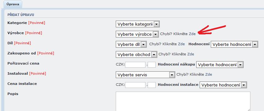 4) New modification = přidáváte úpravy, kolik stáli, kdo je proved a podobně (pokud Vám nějaký údaj chybí, nebojte se ho přidat do seznamu *fin* )