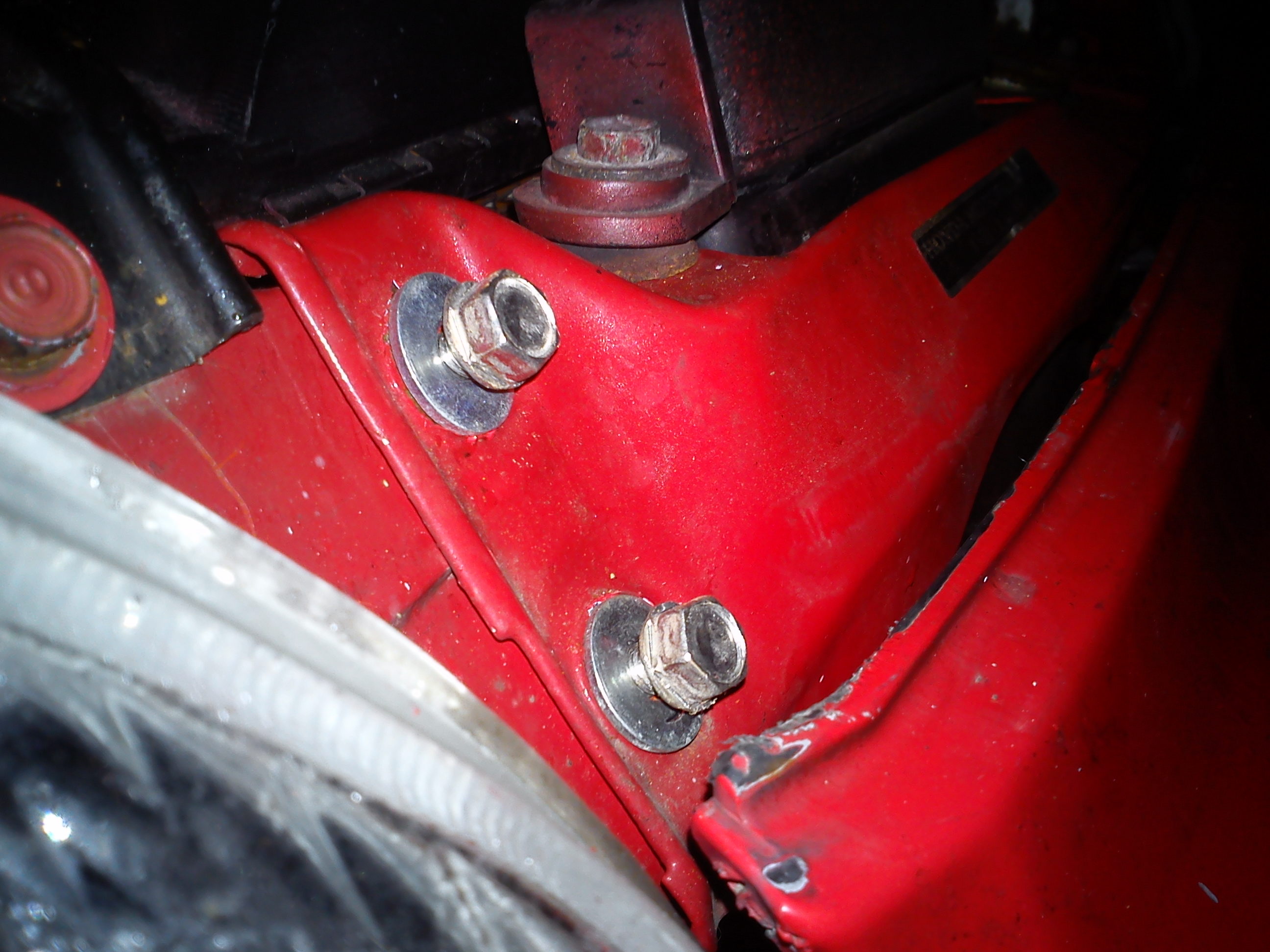 4) Vršek nárazníku drží tři šroubky které drží vršk nárazníku připevněný k nosníku nárazníku. Tak ty taky vyšroubuj. Někdy nejdou odšroubovat, takže je můžeš nechať tam. Pak budeš muset sundat v celku nárazník spolu s tím nosníkem, ale je to jednodušší než se snažit odšroubovat ty šrouby.