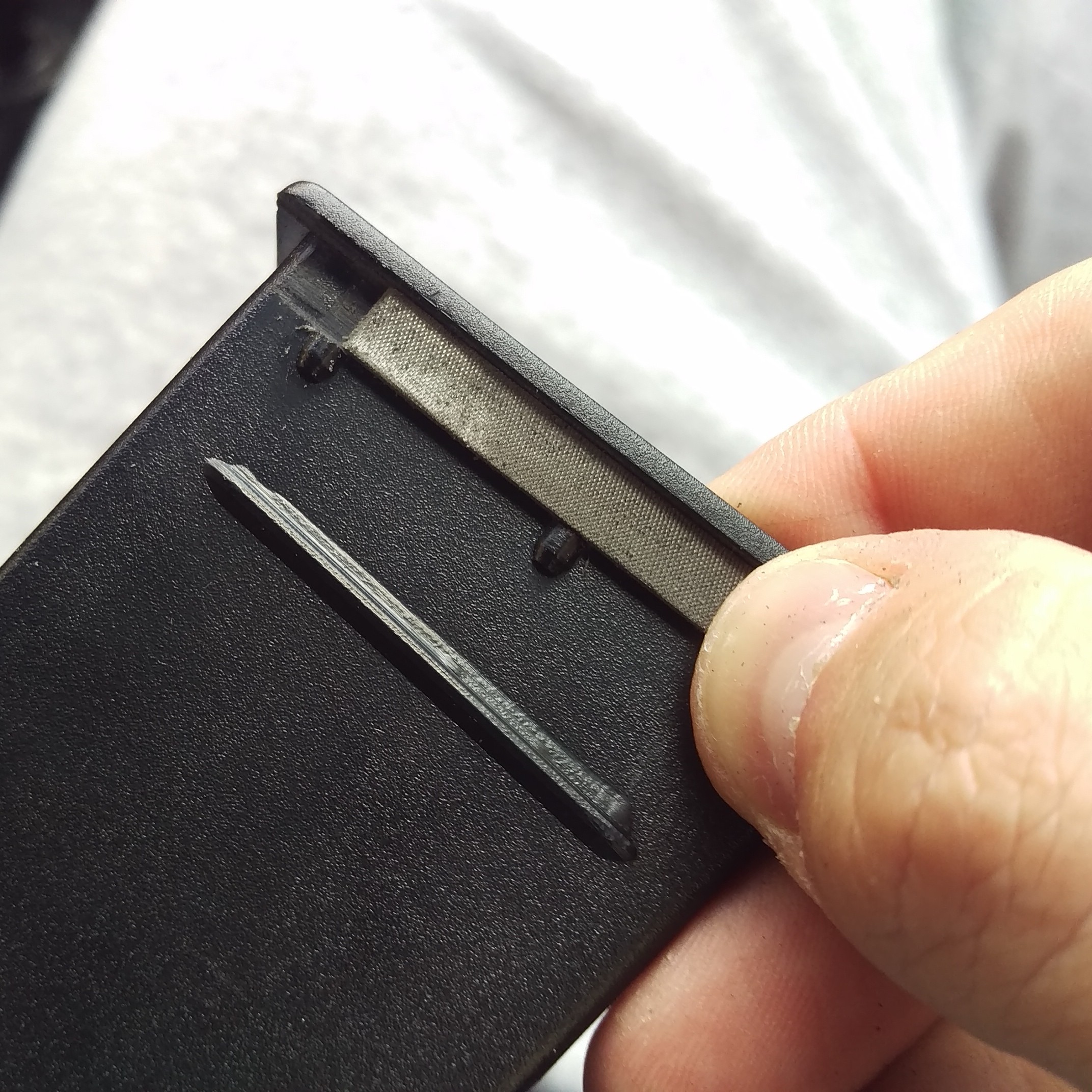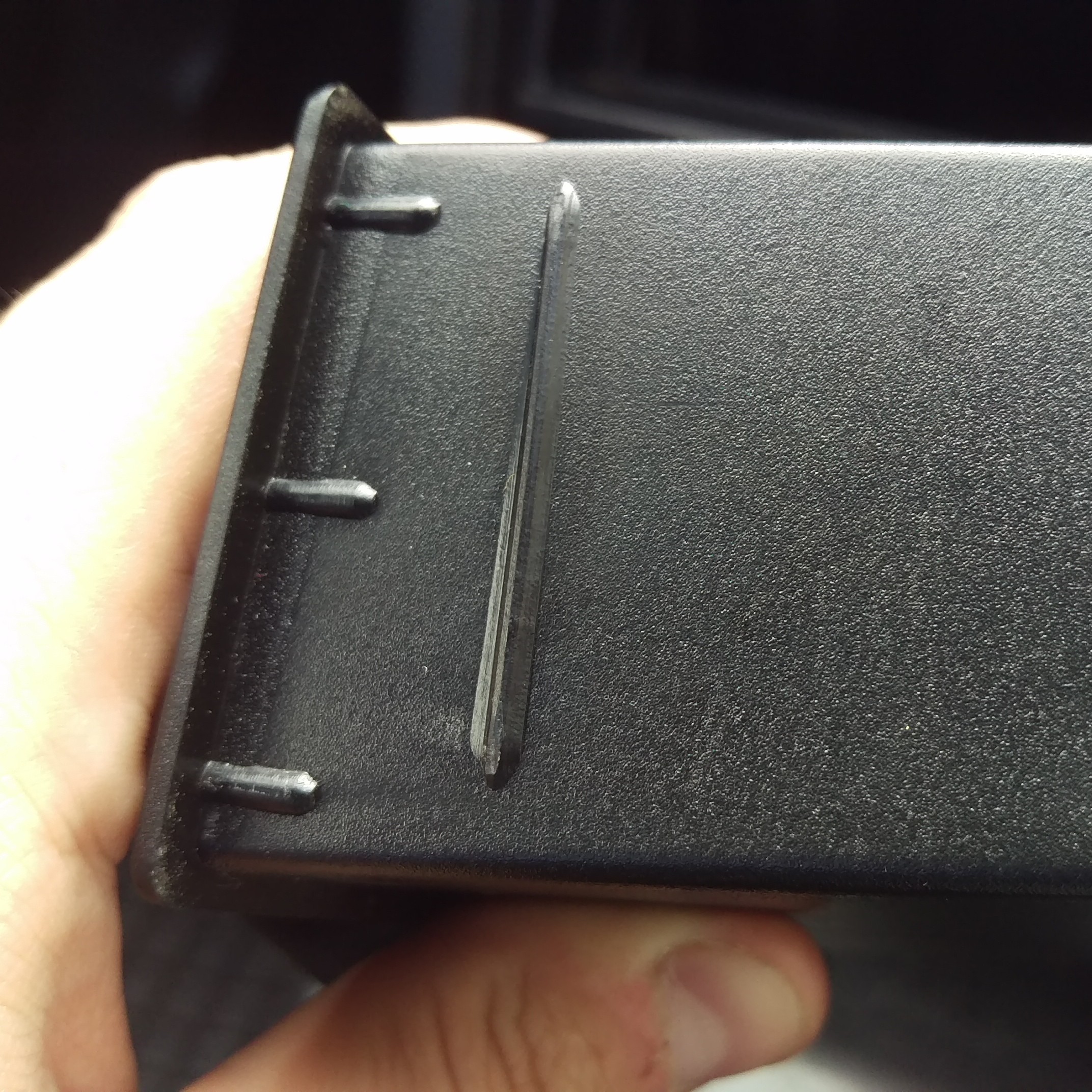 Je to univerzál, takže pokud ho prostě jenom vezmete a nacpete do díry po rádiu, bude sice držet, ale půjde lehce ven pod víceméně jakoukoliv zátěží. Pokud si ale vezmete do ruky pilník a ty boční tři a tři nožky upilujete o 5,5 mm [tloušťka rámečku díry], zacvakne se to tam a už to nedostanete ven bez vyklonění šroubovákem.