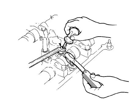 Povolíte zajišťovací matice na všech ventilech seřizovaného válce.