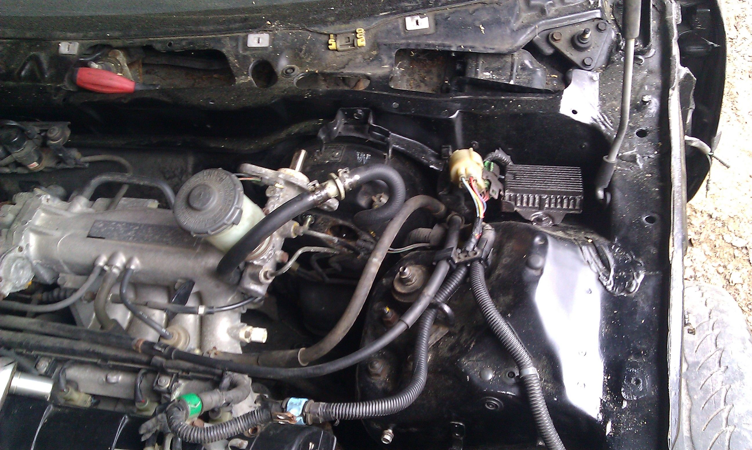 Přidám vlastní zkušenost...Trubky jsem se také bál ohnout takhle daleko tak jsem ho vyklopil nahoru nad posilovač a alternátor prolezl bez problémů..Když jsem ho dával zpět musel jsem si pomoct kladivem a šroubovákem..chce to trochu šikovnosti při vracení spodního šroubu který slouží jako pant prakticky..foto níže..