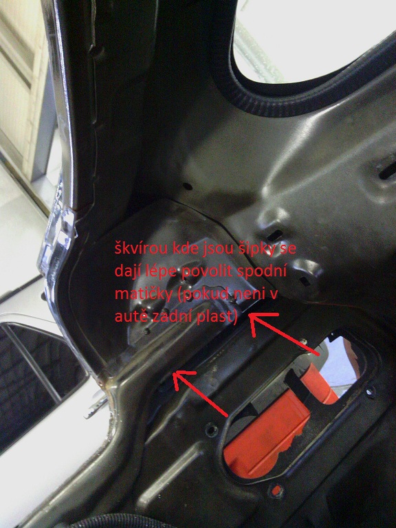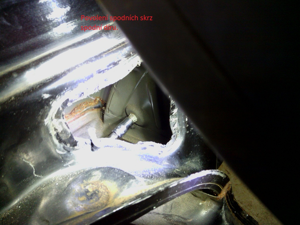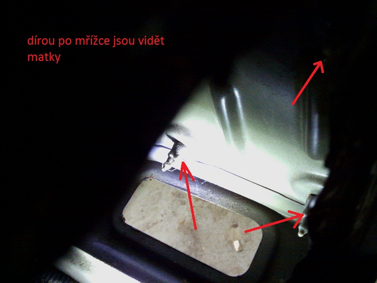 4. vemte si 7ořech a nástavec a horní plastovou matičku povolte dírou po mřížce spodní 2 spodní jdou tudy taky povolitale je lebší dírou která na to přímo vychází (škoda že je pod plastama ) ale ty jsou většinou taky venku :-D teda u mě byli :-)