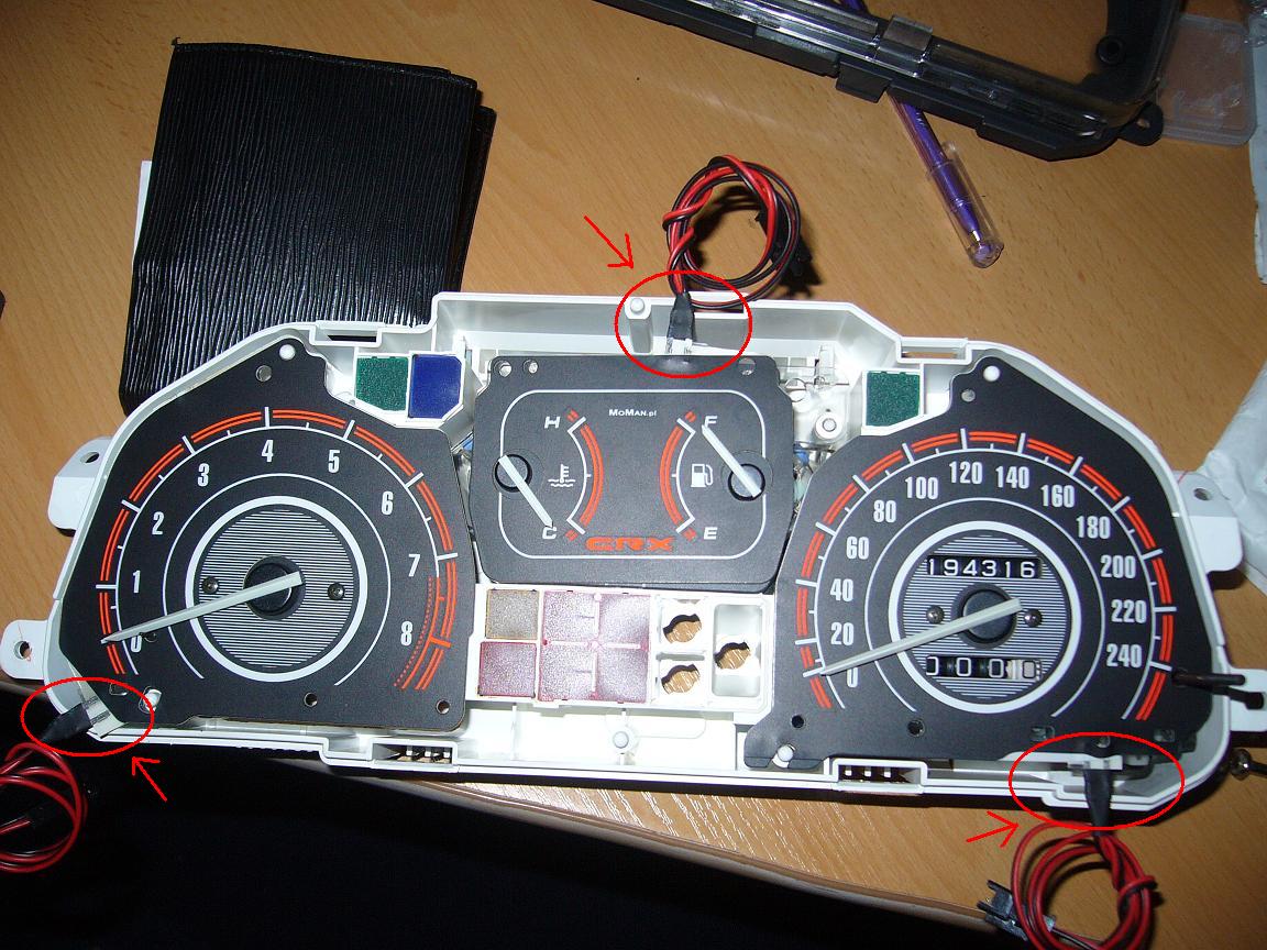 Takže pokusím se teď popsat jak na montáž indiglo podsvitu budíků, dával jsem to na Hondu CRX, ale postup u ostatních modelů bude stejný...