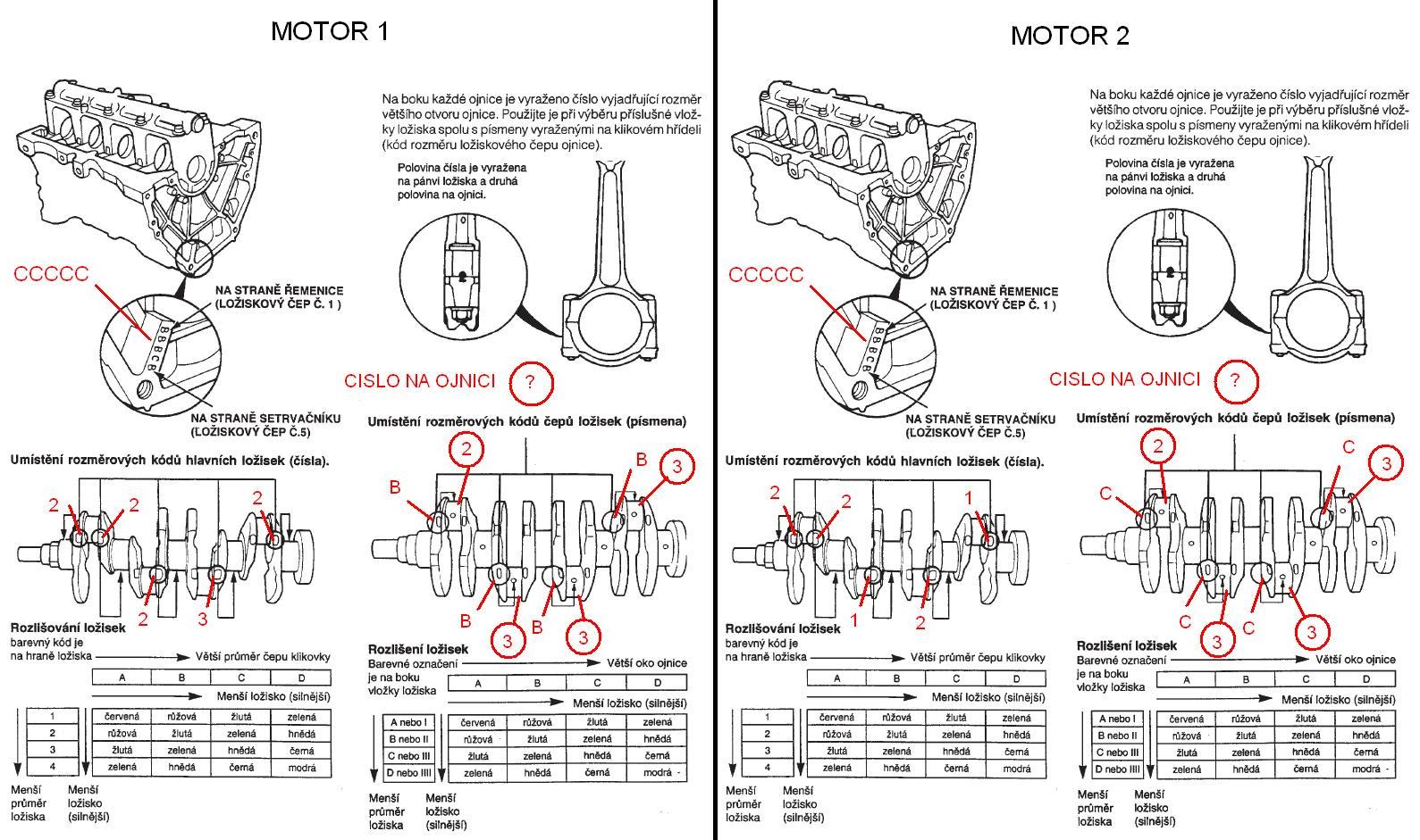 Tak jsem si udelal mensi prehled o motorech co mam doma. Z toho co jsem z toho vycet a snad dobre se mi zda, ze tloustka lozisek je dana barvou? Jak je to napr. pri objednavani, reknu jim ze chci B2, C1, C3 atd... na ulozeni kliky a ojnic? Nevim proc ale zil jsem v domneni ze kliky maj 5 prumeru na ulozeni stejnejny a 4 prumery na ojnice tez. Pak se vyvrtaj diry do bloku na ulozeni kliky a tady muzou byt ty prumery jine. A co se tyce ok ojnic tak ze vyberou 4 ojnice, ktery maji stejny prumer ok nebo i jiny ale ze klika bude mit na 100% vsechny prumery stejne jak na ulozeni do bloku tak ojnic. Ale podle toho co je napsany na obrazkach tomu tak neni