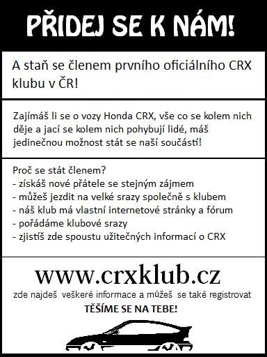Hotovo, pozvánka ke stažení zde :D : http://www.crxklub.cz/upload/pozvanka1.png Posílejte jí za stěrače, do schránek a kam to jen jde :)