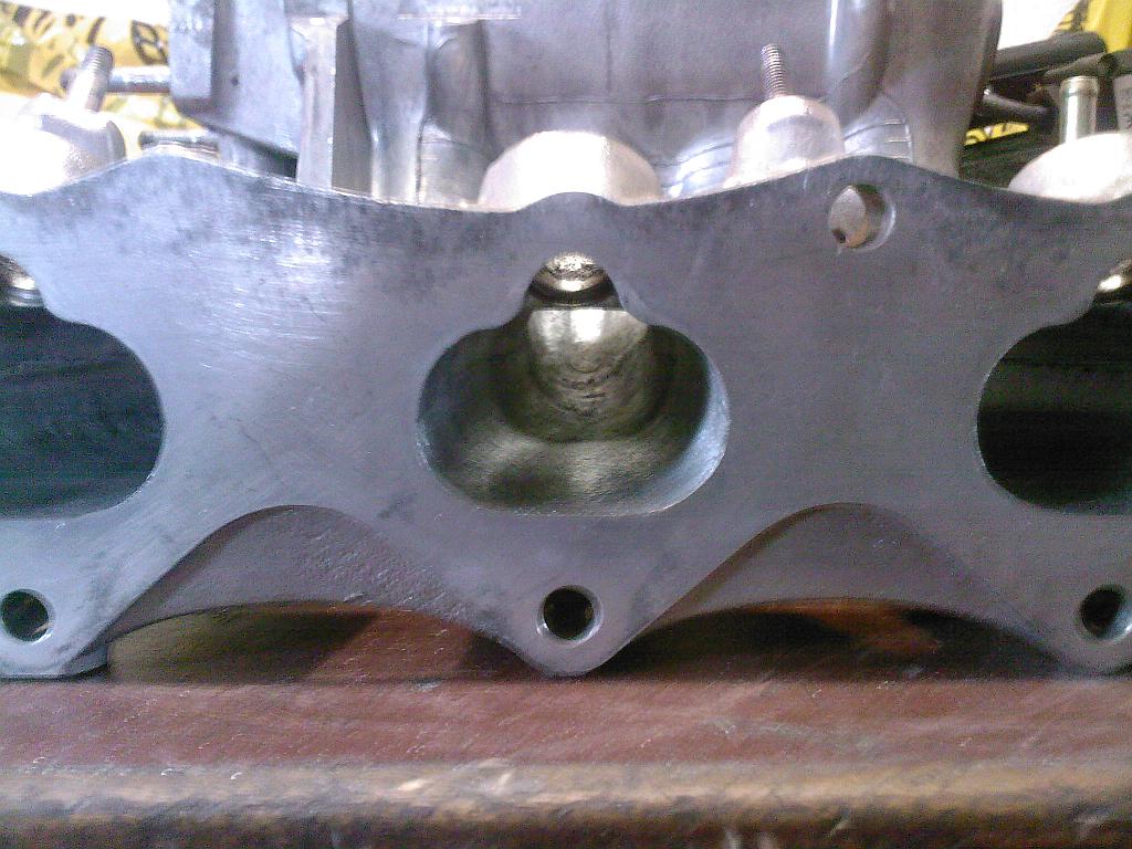 Nakonec sem se rozhodnul, že nepoužiju původní sací komoru, kterou jsem upravoval už dříve, ale udělám novou, kterou upravím trochu jinak. Nová komora, je opět upravená pro montáž B16A1 klapky, ale má jinak tvarované přechody mezi komorou a parožím. Přechody jsou více zaoblené, aby se snížilo víření v těchto místech a také jsou odstraněné veškeré otřepy jak v komoře, tak v paroží. Vstupy sacích kanálů hlavy jsou pak slícované s otvory v přírubě na paroží sací komory.
