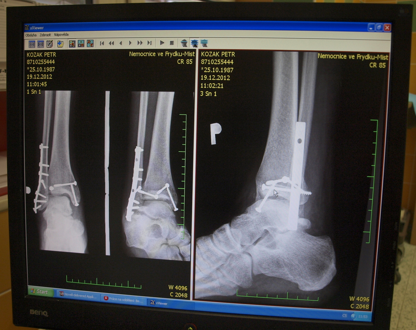 Vypadá to asi nějak takhle, ale prý se to hojí víc než dobře, tak snad budu co nejdřív normálně chodit.