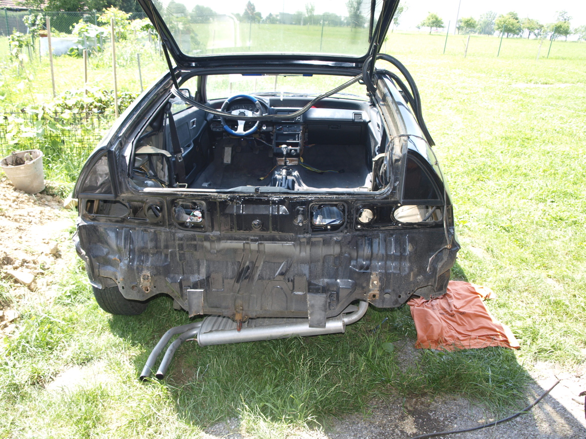 Dnešní svátek práce jsem pojal pracovně a dělal na svojí holce *crx* . Moc se toho nestihlo, ale udělalo se pár důležitých věcí. Zprovoznil jsem stahovačky, musely se napájet nové relátka, podle těch starých a ještě jsem prodloužil kabliky, ať se s tím lépe pracuje. Potom se přetěsnil nový středový a koncový díl výfuku, takže už neprdí. Na středovém dílu se musely převařit úchyty silentů. Dočasně jsem měl půjčeného supersprinta od Magotha, velké díky, super ochotný člověk, víc takových! Ještě zbývá navařit starou koncovku, teď tam jsou takové srandovní trubičky :D No a konečně jsem se podíval na prahy, jak vypadají můžete vidět na fotkách. Není to katastrofa, ale z plechu už je docela papír. Levý je na tom o něco hůř než pravý. Zítra to jedu nechat vařit + přijdou nové kotouče a desky na všechny kola. Momentální brzdy už jsou dost slabé, hlavně je to poznat když jedu se spolujezdcem.