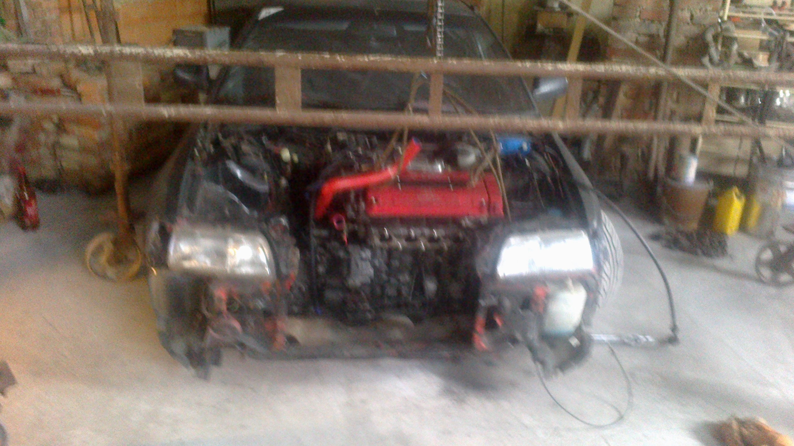 Pomalu se pokračuje, motor dovnitř, nesedí držák na nápravě, špatně jsem vymlátil místo pro altík... motor ven :D. Musí se stejně opravit závity na držáku motoru u rozvodů. Tak dnes aspon nový tlumiče na zadek, promazání brzd.