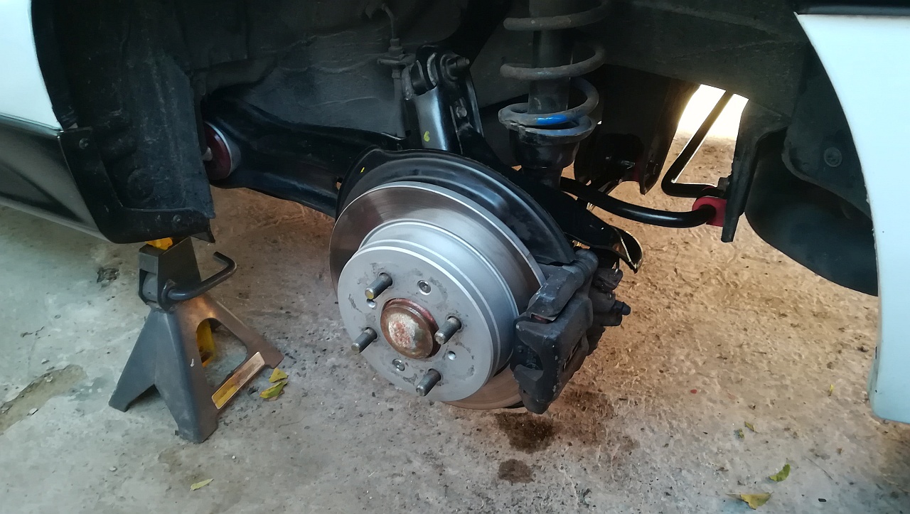 Tak ramena a stabíky jsou konečně na autě. Vzal sem to jako komplet údržbu podvozku a brzd, takže to trochu trvalo.