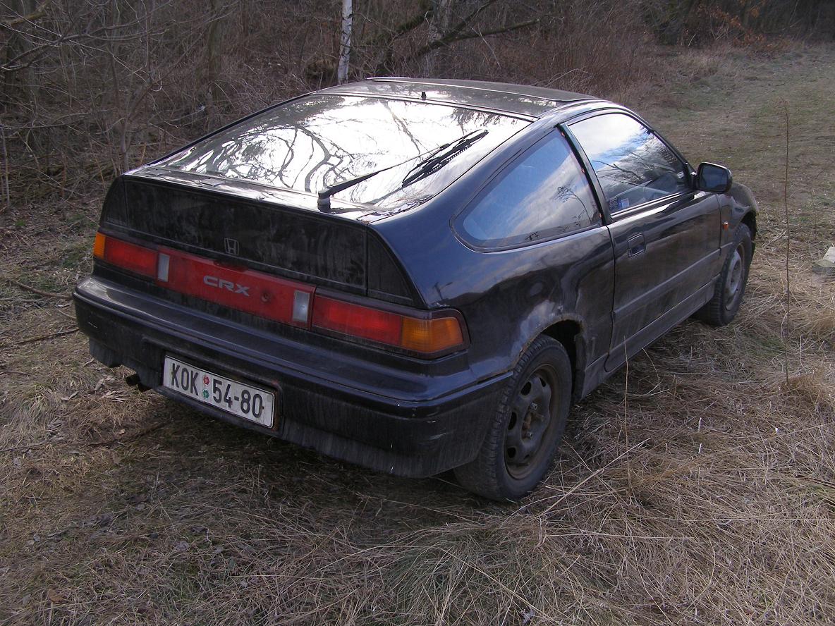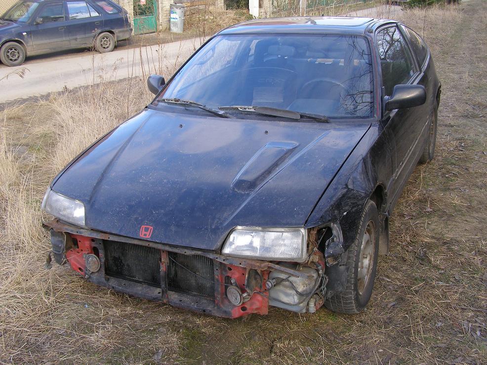Tak konečně se mi povedlo získat CRX sice ne v takovém stavu jaký bych chtěl ale mám ho je to můj sen od mojich 15 let.K autu jsem přišel tak že na parkovišti u školy kam chodím na nástavbu se objevilo černé CRX kompletní akorát celkem shnilé ale řekl jsem si že by se dalo zachránit.Stálo tam asi 14 dní a najednou z něj zmizel přední nárazník a jedna pozička,asi po týdnu jsem dal lísteček za stěrač že koupím a tel. číslo.Za 4 dny se mi ozval kluk že kolik bych za to dal,já sem akorát řekl že je to ve špatném stavu a on jeslti to chci na díly tak je to bez dokladů a za cenu železa 800 kč že to jezdí akorát tam neni benzín,hned jsem řekl že beru a ještě ten den jsem jel pro něj(možná i z obavy dalšího rozkradení