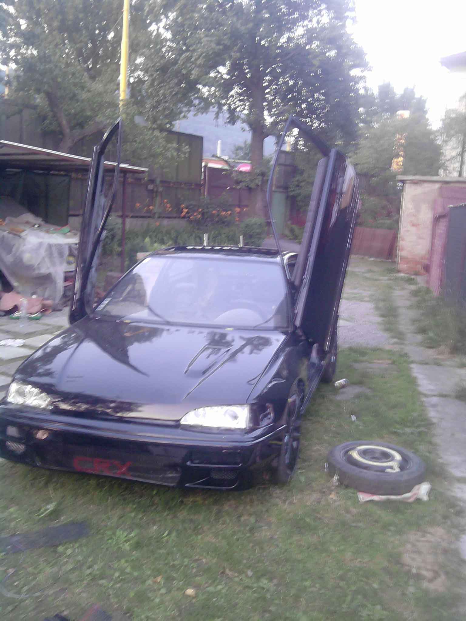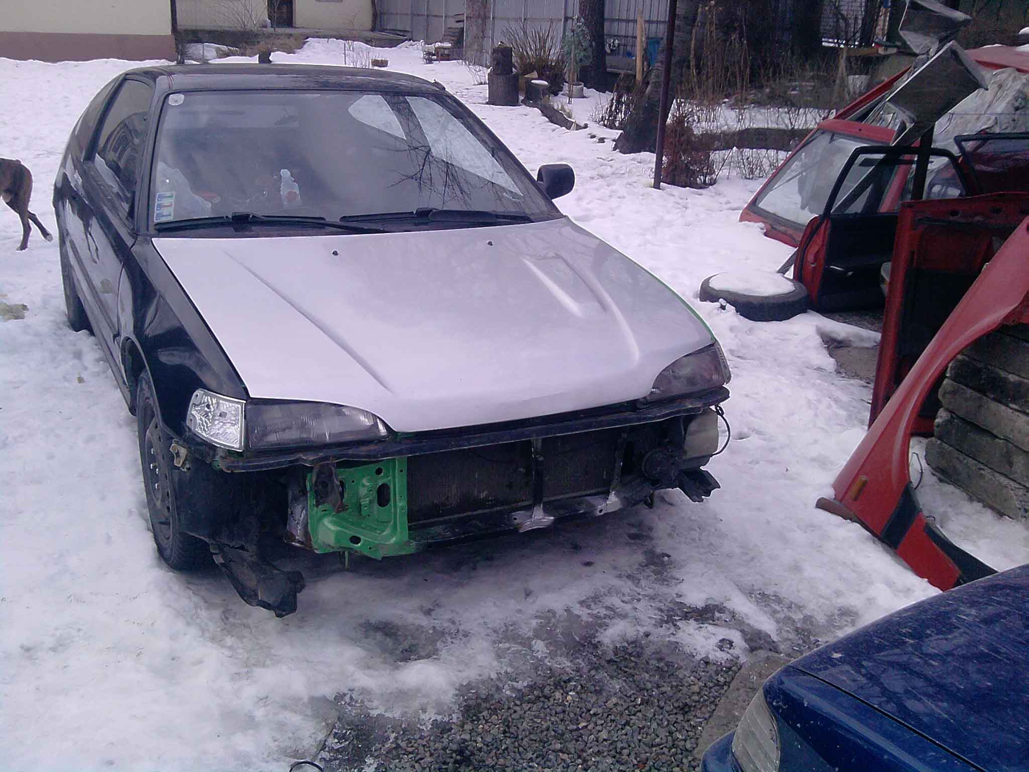 po tomto zakroku bol predok ako tak wirieseny. No prisla zla chwilka..a moju lasku som nabural..odniesla si to nowa prizmurena kapota blatnik , naranzik nosnika a chladic . cize Dalsia moja investicia bola Novi chladic, blatnik naraznik a kupil som kus odrezany z druhej crx ktory som si na tu moju navaril a celkom sa podarilo..zvary su riadne osetrene zinkom a njekolkymi vrstvami body =). Dalsia vec bola vyfuk..po dlhsiom skumani som vyzistil aky by bol co najlepsi priemer a tvar...a aj sa tak stalo..a na mojej honde je novy vyfuk cely z antikoru z jedinym koncovim tlmicom Ktory ale hrozne reve tak musim dorobit este jeden