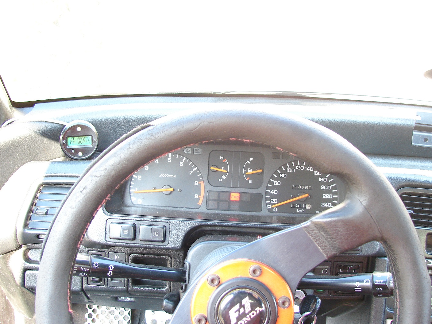 Tak dnes se mi konečne podařilo zprovoznit duální budík na měření teplot vody a oleje od Ljaye.Budík byl doma už delší čas, tak jsem aspoň vymýšlel jeho umístění a s tím jsem spojil výrobu nějakého držáku, jelikož se mi nechtělo žádný kupovat....no nakonec to dopadlo tak, že jsem jich vyrobil asi 7 evoluci *vytlem* ale teď už jsem spokojený :) V mezičase čekání na čidla a konektory jsem si nakoupil "sendvič" mezi olejový filtr a blok.Dále bylo potřeba koupit mezikus na hadici k chladiči.Tyto dva prvky jsou potřeba k montáži čidel, ale mají zavit M10, zato čidla jsou M12x1,5.Čili bez převrtání děr a vyříznutí nových zavitů se to neobešlo.A tím bylo vše připravené k montáži.Jen ještě zmíním, že budík ukazuje aktualní hodnoty(umí je i ukládat) a ma i LED kontrolky, které mění barvu podle teploty:málo-oranžová, provozní-zelená, větší červená, největší blikající červená.Ještě má i akusticky signal,což je paráda :)