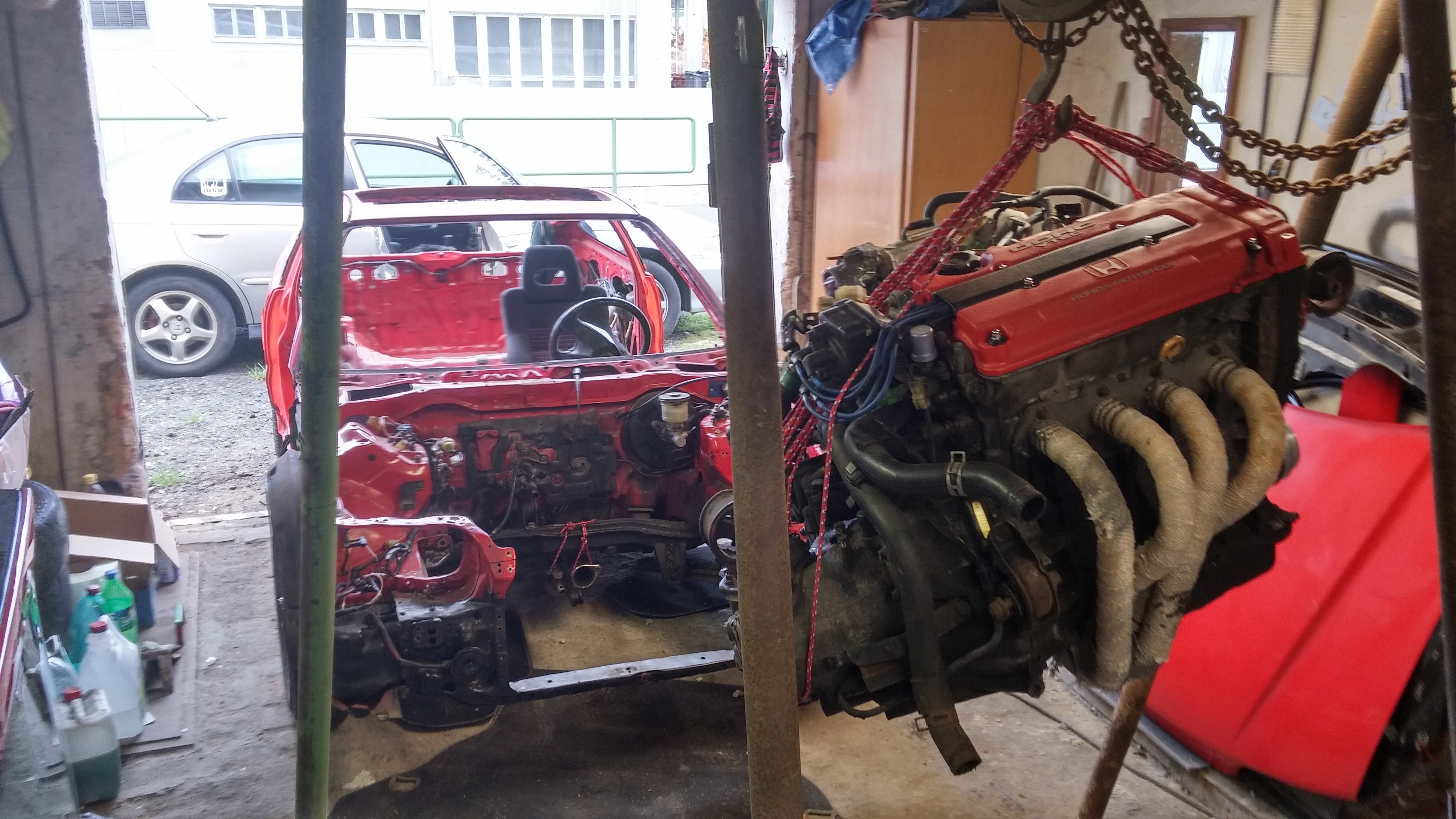A po dlouhých hodinách tý snad nejotravnější práce je to za mnou a motor je konečně venku a kastle je téměř připravená do lakovny.