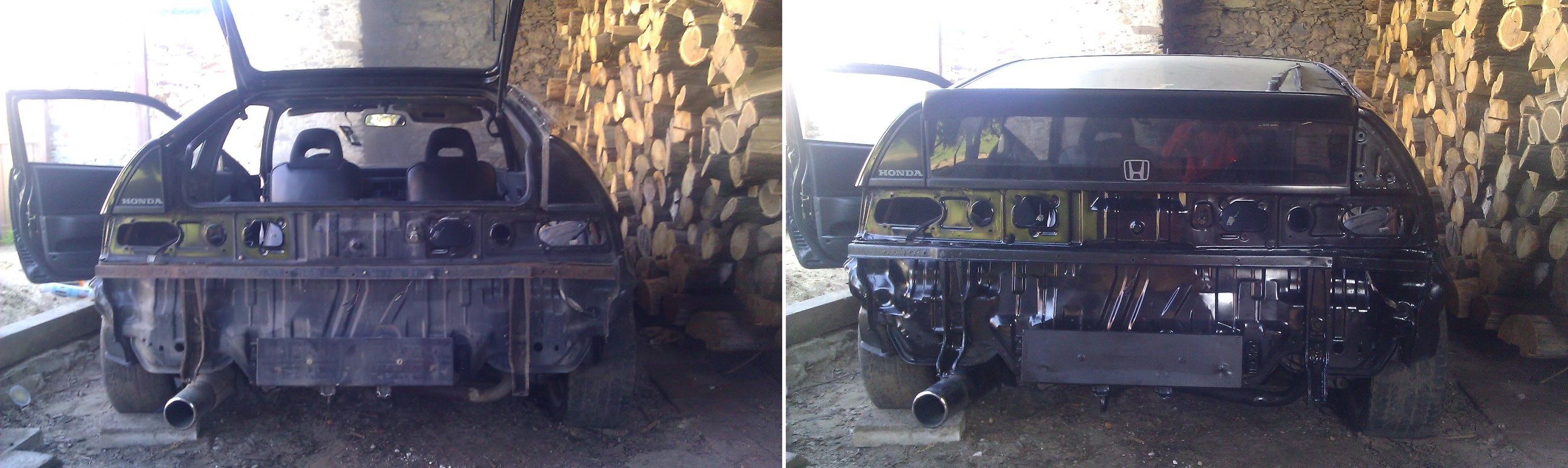 Aaa ted zrovna jdu zas delat na CRX,mam plan komplet precalounit interier,dat nove koberce ale jako prvni vse dukladne obrousit a striknout.Hodim sem pak nejake dalsi foto.Hu haa HONDA