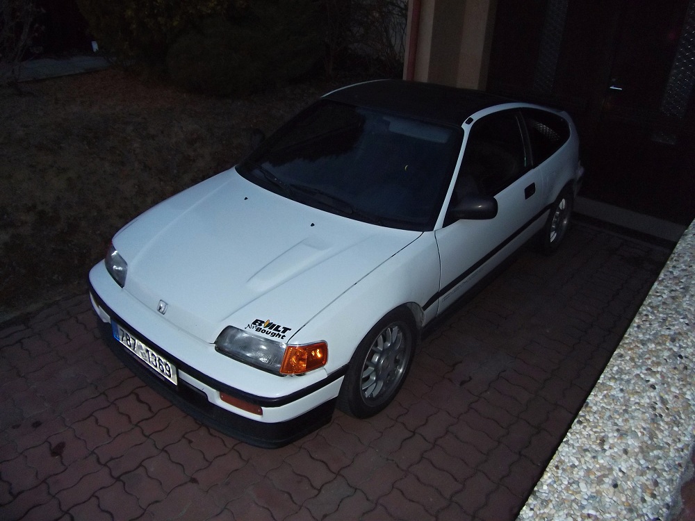 Zhruba před 11 hodinama jsem se stal majitelem krásné bílé CRX po Duglesovi. Přibližně po 5-ti měsíčním hledáním jsem konečně narazil na auto za rozumnou cenu, v dobrém stavu a jako bonus jsem dostal vzhled po kterém jsem toužil od počátku mého CRX bláznovství. Bílé auto, černé lišty a jiné plasty, černá střecha, oranžové pozičky a blinkry. Předface přední nárazník, ale auto jinak poface. Semišový volant (původně jsem chtěl OMP, ale Milano Racing se drží taky dobře