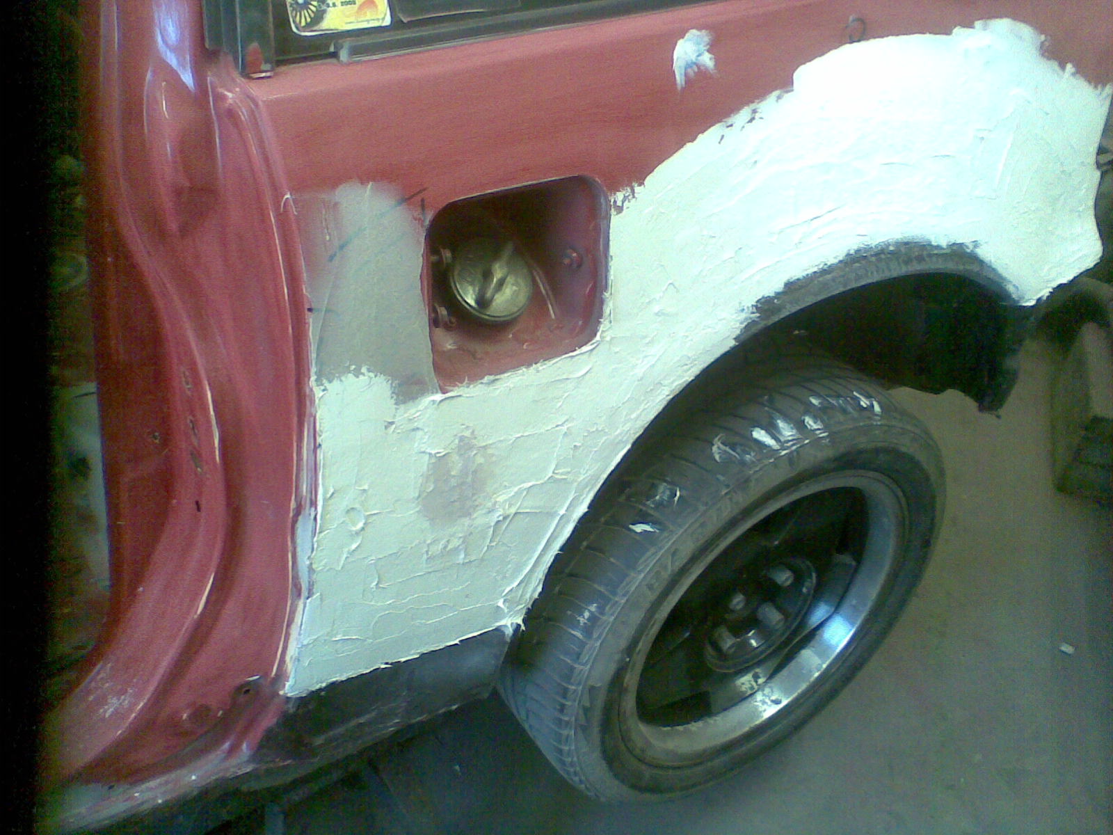 to stříkání mi dělal známý za pár kaček,němělo cenu nechávat to celé lakovat kdyz se na tom potřebovalo udělat ještě moc věcí,takže se to stříklo jen aby to nebylo v plniči.