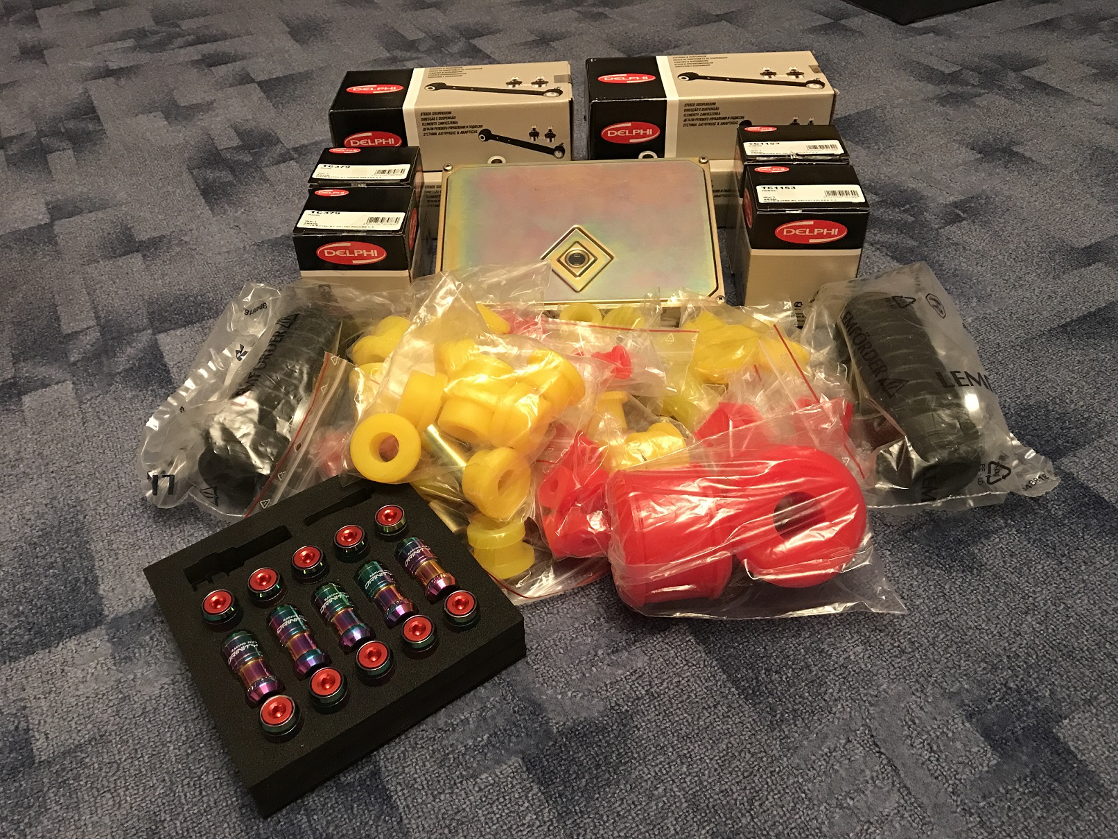 Tak se nám to zase začíná hýbat :) Shromáždilo se pár dílů, blbůstek a včera konečně dorazil velice očekávaný balíček s kompletní sadou silentbloků pro tu mojí potvoru za které tímto děkuji Hifilovi, takže se bude pomaličku rozebírat a finišovat na sezónu 2017 *dance* Na autě se jinak nic zásadního nezměnilo..Spíše takové drobnosti pro radost - sportovní volant a manžeta řadičky, žárovky OSRAM a nakonec jsme zkusili změřit tlaky válců, což docela potěšilo. Tlaky byly 13-13-13,8 -14 :) Mezítím jsem si také připravila tapecy dvěří (moc děkuji Laziikovi za radu, jak je vydrbat) Hodila jsem je do vany a už to jelo a řekla bych, že nevypadají zase tak strašně :lol: Také moc děkuji Braňovi za Ecu a jsem hodně zvedavá, jak to s ní pojede *jizda* Někde o kousek výše jsem se také zmiňovala o čepech 555, ale nakonec jsem zvolila Delphi, které máme na druhém crx a bez problému, takže uvidíme, jak dlouho vydrží *vytlem*