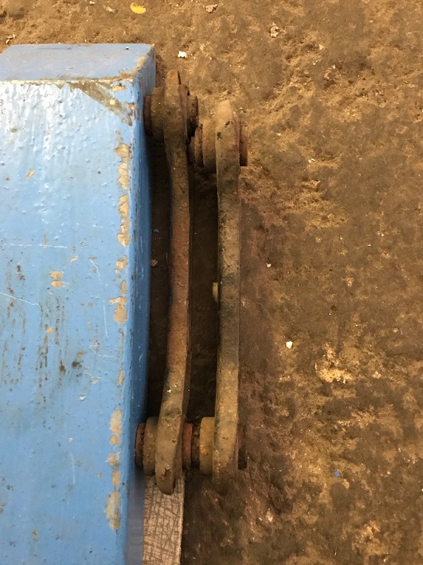 Dalším překvapením pro nás byla ramínka zadní sbíhavosti. Jedno bylo originální díl, druhé zajímavým způsobem prodloužené asi o dva centimetry. Prostě ho někdo v půlce přeřízl a vevařil tam kus pásovinky. Přičemž v karoserii bylo toto ramínko uchyceno na dorazu svých možností a stejně to bylo málo - bylo příliš dlouhé... Proč to??