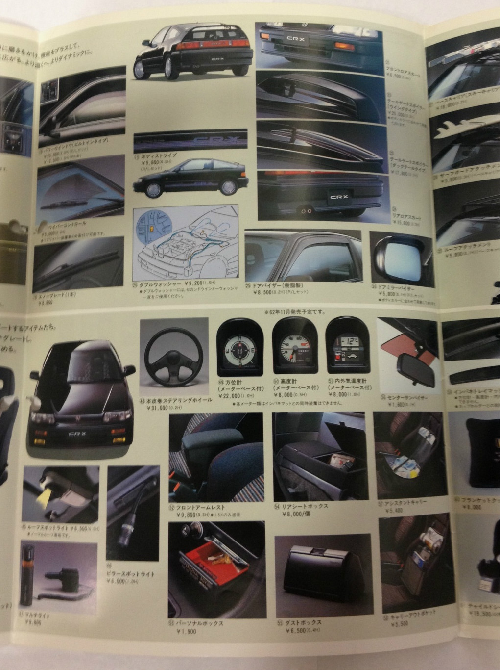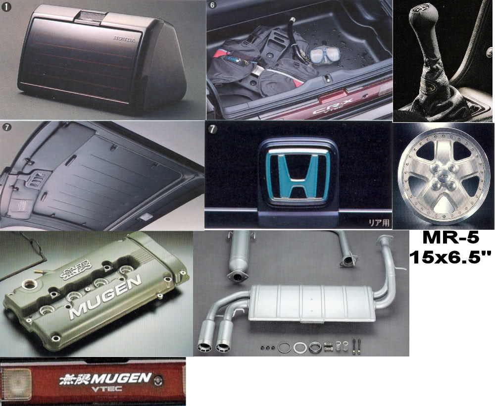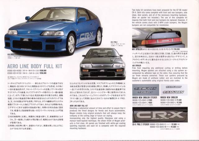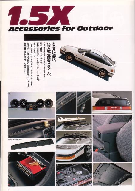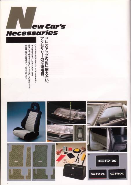 Tak mám tady pro vás taky jednu brožurku. Je to katalog originál doplňků pro CRX a pokud někdo umí dobře japonsky, tak si určitě i dobře počtete